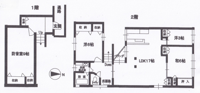 防音室付きの貸家です。 駅徒歩2分の好立地! スーパー西友まで徒歩1分! ※事務所使用も相談になります 注:リフォーム済みですが、築年数の経つ建物で現状渡しになります。1階には店舗も入っていますので、現況をよくご確認ください